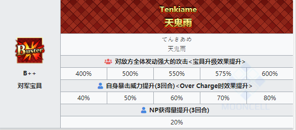 伤害增加:对敌方全体发动400%~600%伤害强大的攻击宝具升级效果提升