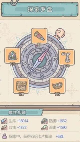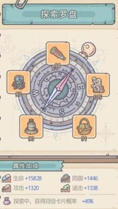言归正传,在获得高五维属性贵重品之后,第一件事就是去罗盘将低属性的贵重品替换下来,毕竟探索加成属性和贵重五维属性是成正相关的。