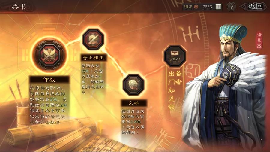 诸葛亮的兵书是为了更好配合白毦兵,奇正相生使诸葛亮获得15+%概率的连击,文稻则是提高自身输出。