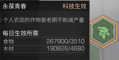 Tips:生物多样性和永葆青春属于营地科技,需要营地官员配合开发。