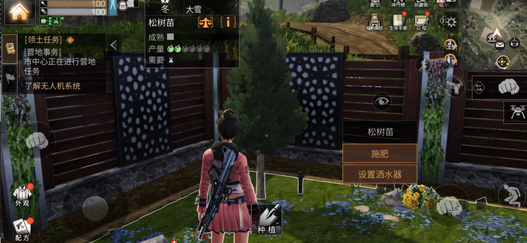 无暇打理的幸存者们在开启神秘庭院科技后,可以选择给庭院配置自动配件,包括自动洒水器、自动矿灯与自动喂食器。