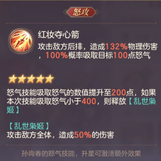 全队的副c,大招70%的降怒概率论谁都会心动。五星之后的渊弟更是能在敌方首次释放怒攻时恢复1000怒气值,从而立刻释放第二次怒攻,配上与惇哥的羁绊能让惇哥立刻恢复30%的最大血量,夏侯兄弟的【兄弟情深】简直妙哉。