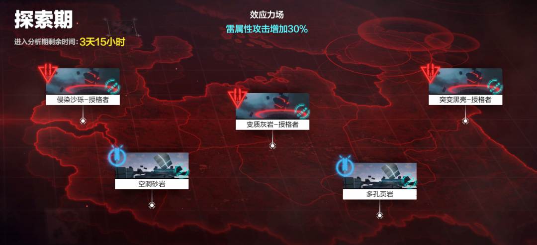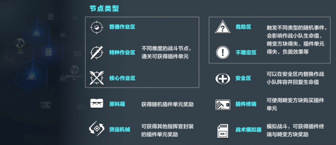 (4)、探索期区域中包含各类节点,不同节点会带来不同的效果,指挥官可结合自身小队作战情况选择需要前进的节点。