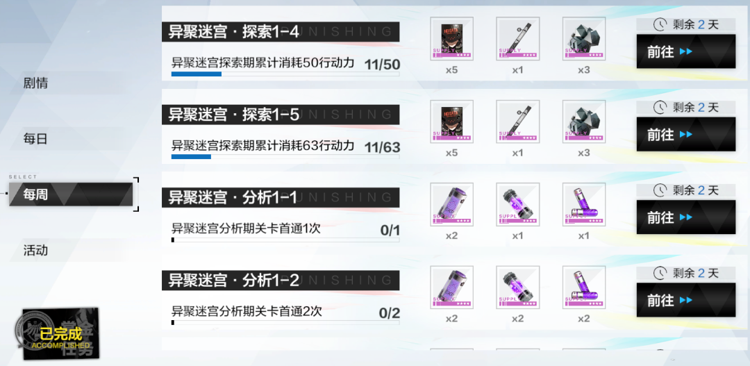 1、异聚迷宫奖励分为周常任务奖励以及段位奖励。