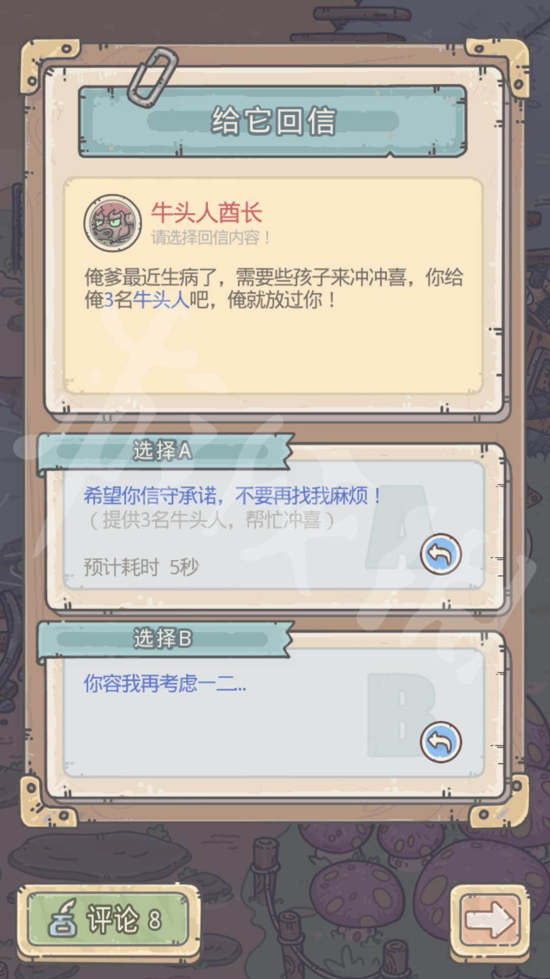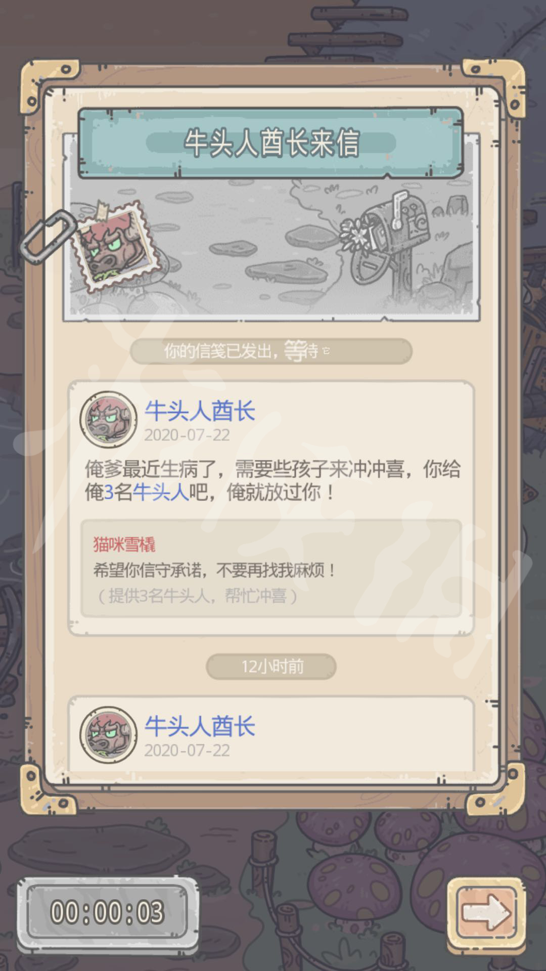 3、我们回复书信,它会向我们要3个牛崽子冲喜。