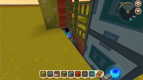 5、从左边门框的转轴方块开始,在地道里连接蓝色电能线。