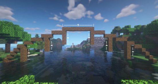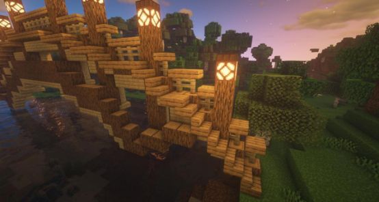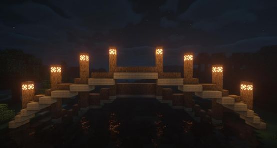在桥的内侧再用橡木原木搭一个装饰用的框架。