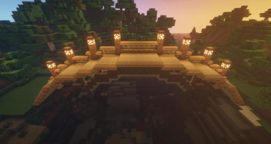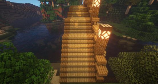 拓宽桥面,中间为宽度为3的白桦木楼梯和白桦木台阶。