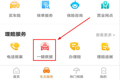 2、除此之外,还可以在车主服务的功能界面下看到一键救援的功能选项,点击进入即可。