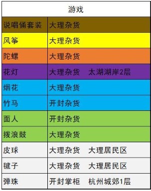 我的侠客中有很多游戏材料道具可以获得,有风筝、陀螺、烟花、皮球等不同的物品。