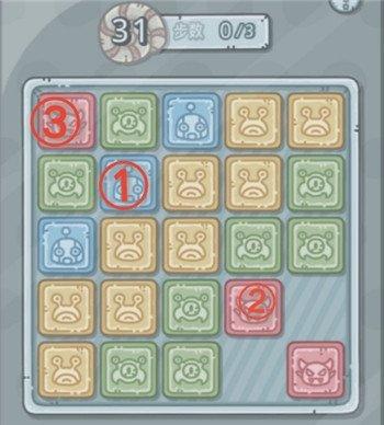 这个小游戏一共有50关,关卡类型有2*2/3*3/4*4/5*5,这四种难度。玩家需要做的,就是点击方块变色。