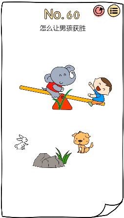 脑洞大神第60关怎么通关?许多同学都不清楚,游戏中大量原创谜题,答题消耗体力,体力需要通关时间恢复,这款脑洞游戏和好玩关键是不会弹广告,闲散时间玩一玩挺合适的,大量的关卡等你来挑战,难度越来越大,非常具有挑战性,那么这里小编就给大家带来怎么让男孩获胜通关步骤一览,希望能作为玩家的参考。