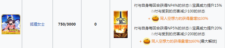 在科科角携带商店礼装 【狐狸女士】 刷取 【同人空想力】 ,同时收集600张 【米米币钞票】