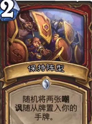 保持阵型是将在新版本推出的一张战士法术卡牌,这张卡牌可以用来发现并补充卡牌,卡牌充满了未知性,比较看重玩家的运气,那么下面小编就为大家带来炉石传说保持阵型测评,希望大家能够喜欢哦。