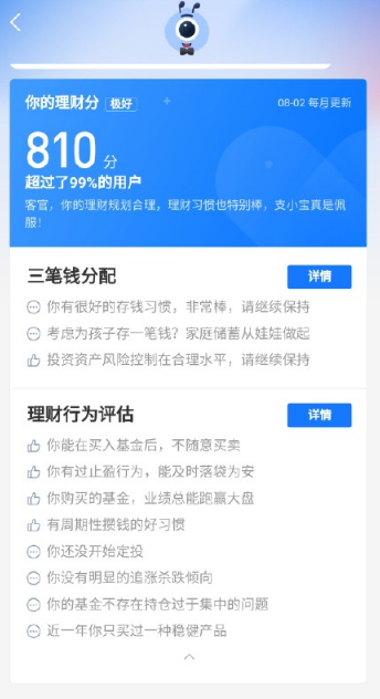 理财分区间大约在350—950之间,分越高,代表理财方式越合理,配置越科学,可能最高分是1000+,上不封顶。