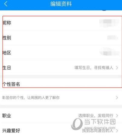 2、接着我们可以在该页面中对昵称、头像、性别、地区、生日进行设置