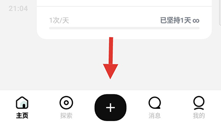1、首先打开探记记录APP,进入软件之后,点击底部菜单栏中间的+号按钮;