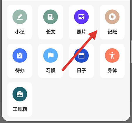 2、这时候会弹出一个选框,选择其中的记账选项;