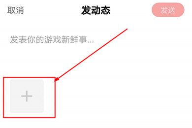 2、然后进入到发表动态的功能界面中,输入一段文字后继续选择带框的+号添加视频文件。
