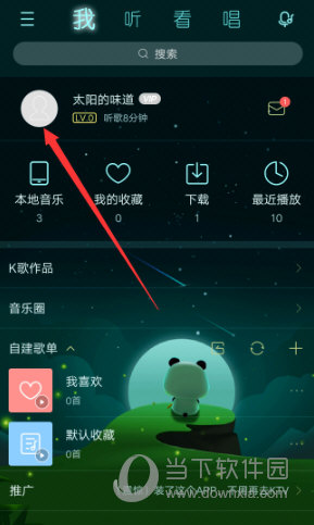 1、打开酷狗音乐APP后,进入到首页,点击上方【我】按钮,接着进入到【我】界面,显示自己听过的歌曲等信息,点击个人头像。