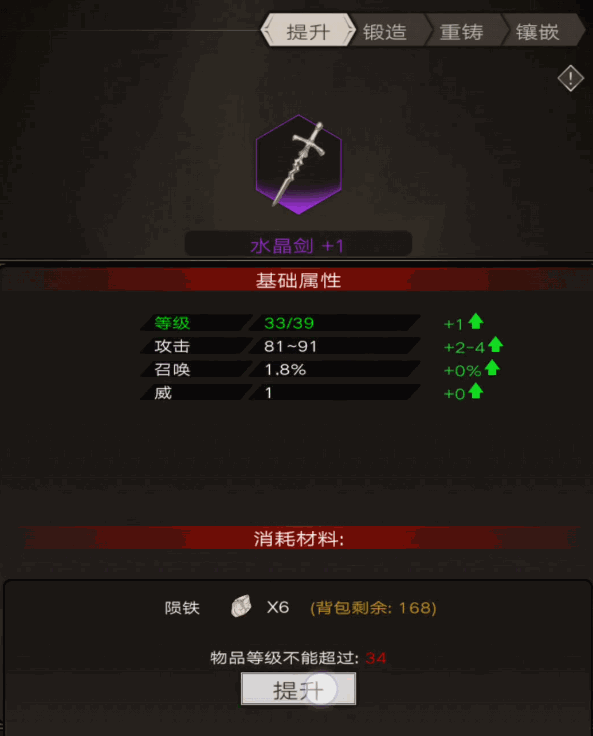 获得高评分的装备后,下一步就是在魔盒中强化装备。共有提升、锻造、重铸、镶嵌四种强化方法,比较常用的是前两种方法。提升是内部的强化,通过提高装备的等级,来让装备的各项属性得到增加,该方法需要花费陨铁;锻造则是外部的强化,通过外部的加持,来让装备的属性得到增强,也因此锻造等级是可继承的,在更换装备时,能够让新装备继承旧装备的锻造等级。