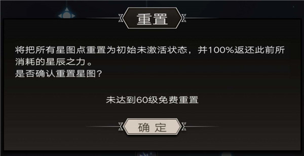 最后与技能一样,星图也是可以重置的,并且在60级前重置均是免费的。