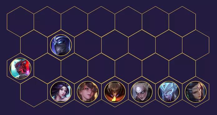 前期就是围绕皎月+丽桑卓3月神构建阵容。搭配派克或者阿卡丽凑2刺客,上武器和亚索补充前排的坦度,或者搭配腥红之月即可。