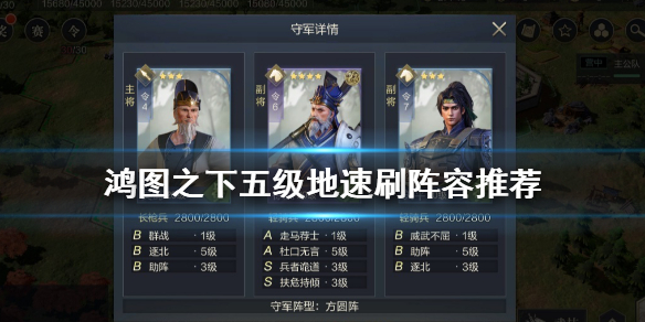 鸿图之下5级资源地怎么过?对于很多想要去获取更多资源的玩家来说,在鸿图之下中,去挑战五级地是再好不过的选择了,那我们要怎么有效率的快速通过五级地获取资源呢?其实十分简单,只要你阵容搭配合理就很好通过,小编今天为大家带来了五级地速刷阵容推荐 ,希望对大家有帮助。