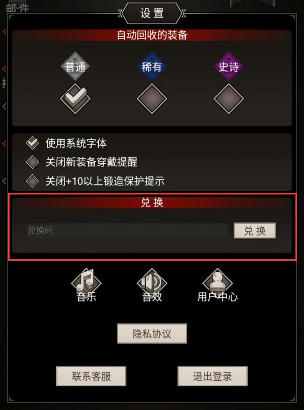 兑换的位置就在游戏首屏的设置页里面,输入兑换码即可兑换。