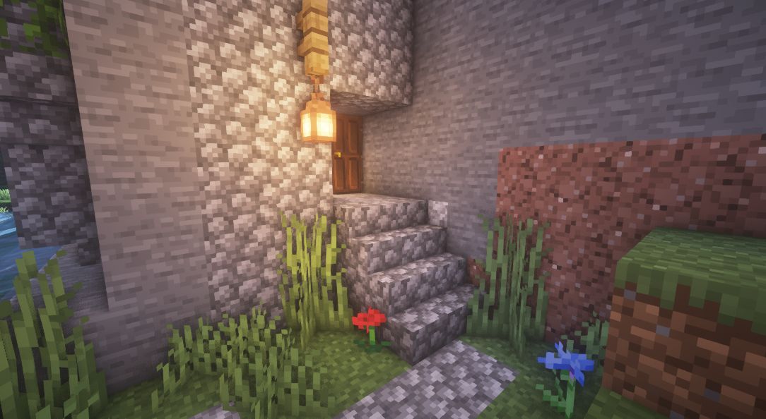 这里可以用圆石跟圆石楼梯搭建出一条小路。