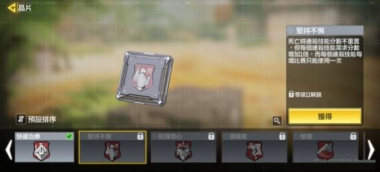 坚持不懈:死亡时连杀技能分数不重置,但每个连杀技能需求分数增加一倍,每个练啥技能每场比赛只能使用一次。