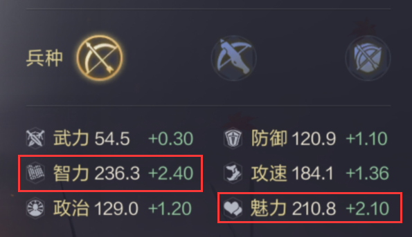 于吉的定位是智,满级智力达到了236.3,处在智力型武将第一梯队。满级魅力值210.8,同样表现非常优秀。