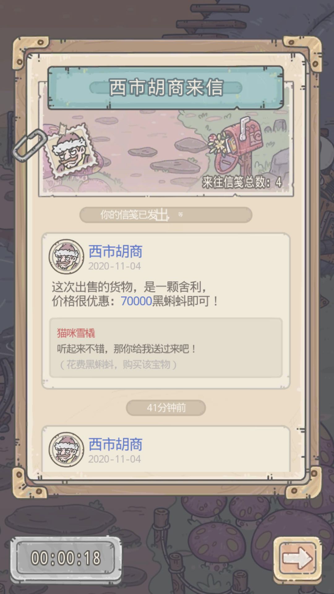 2、回复胡商信件后,胡商会向蜗爷们兜售一种商品,各位蜗爷可自行选择是否购买。