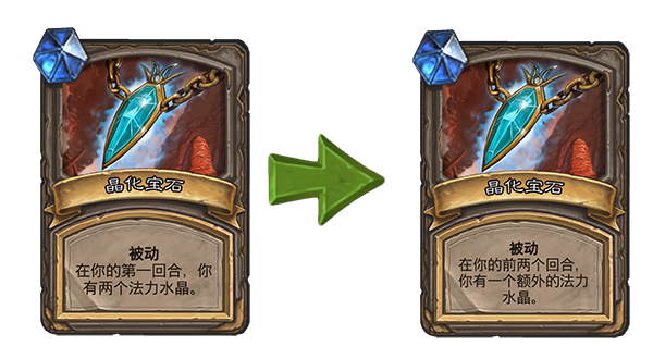 旧:在你的第一回合,你有两个法力水晶。 新:在你的前两个回合,你有一个额外的法力水晶。