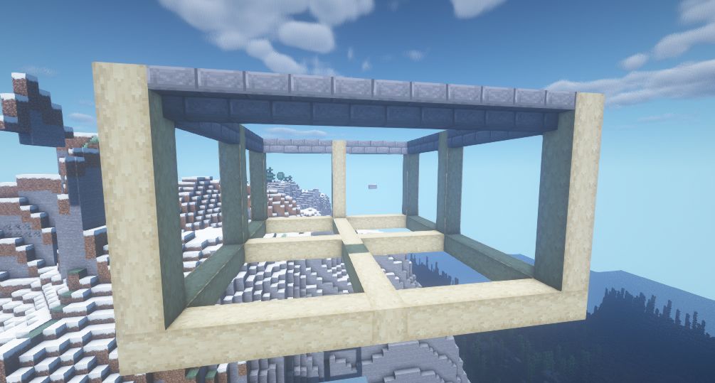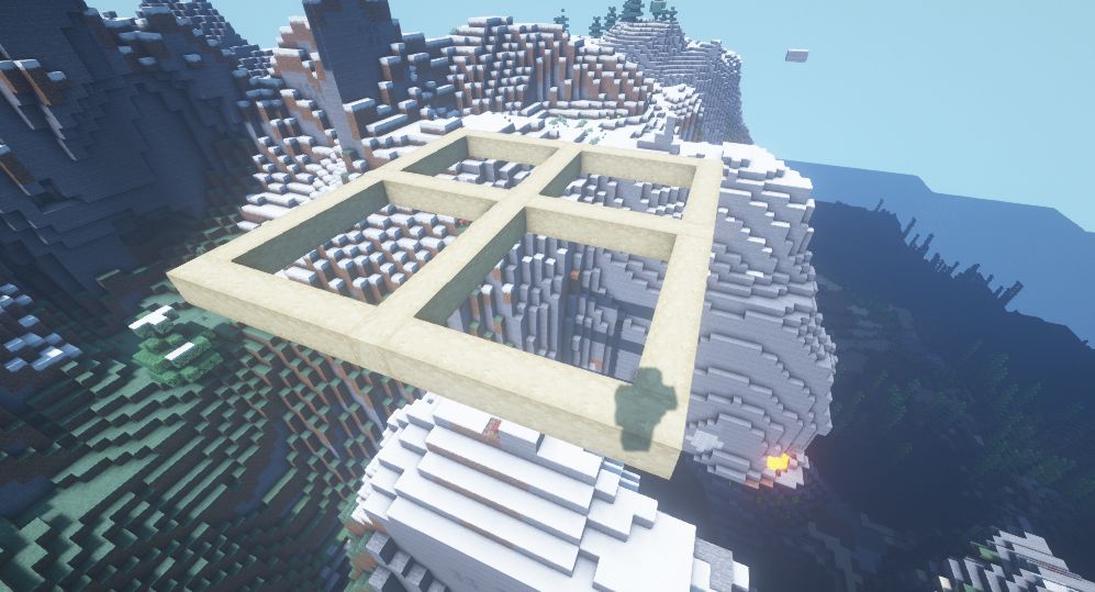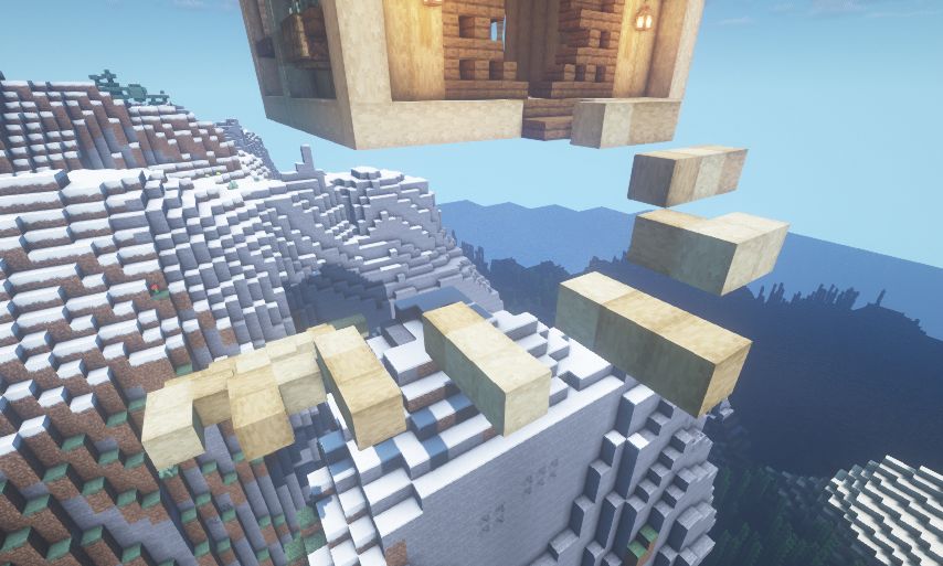 接下来再用去皮橡木和去皮白桦木搭建一条通往空中小屋的通道,房子就完成啦。