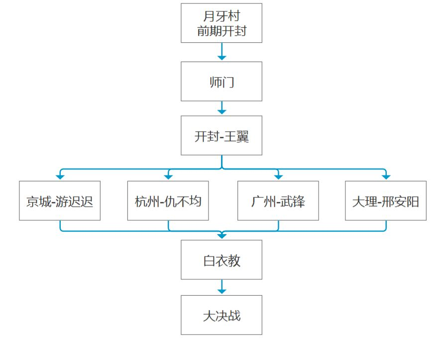 前期基本是线性的。到了开封打完王翼后,一次性开放了四个主城的主线,你可以随意挑选其中一个去做。全部做完之后,进入跟最终BOSS的决战。