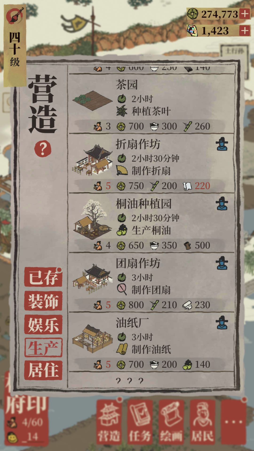 3.选择生产界面。下拉找到团扇作坊。