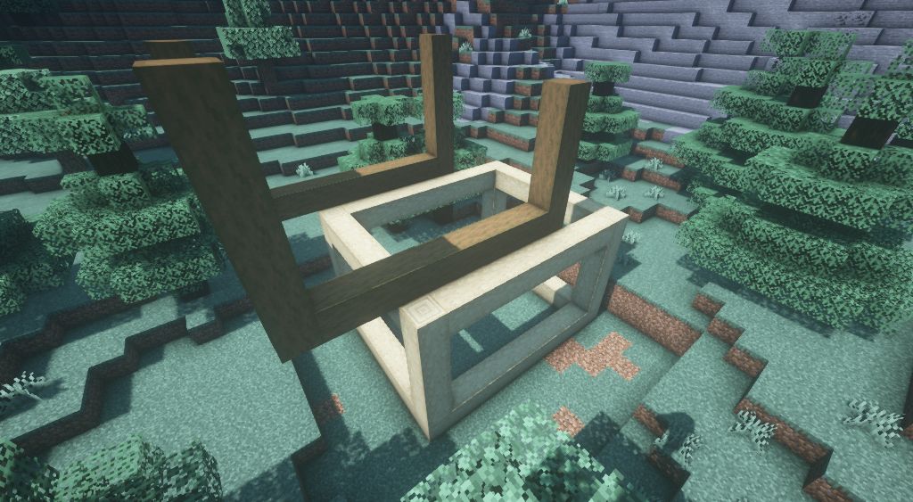 用去皮云杉原木在上面的基础上叠加一层,记得整体往左移动三个方块。