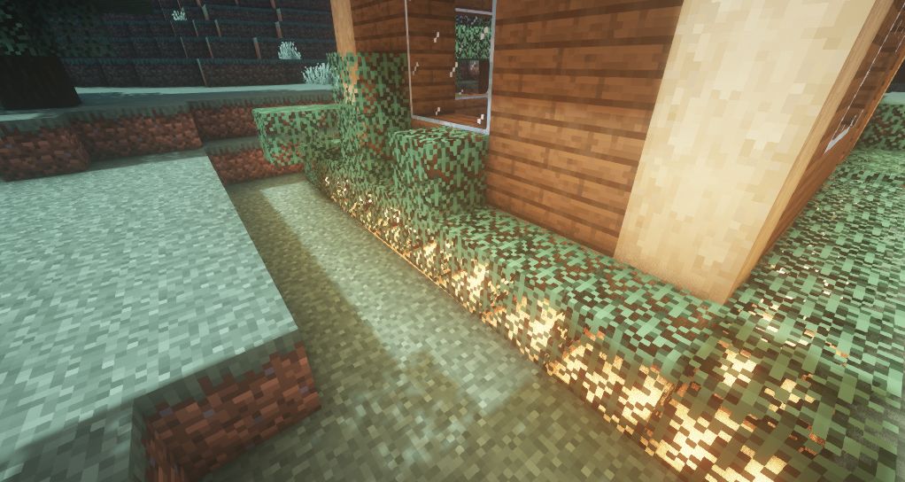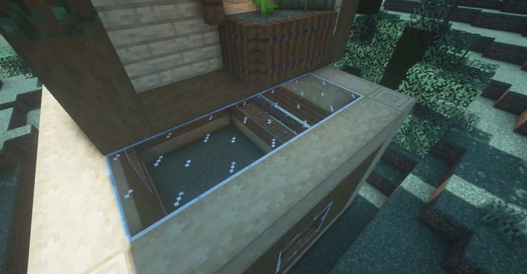 屋子周围用海晶灯和树叶进行点缀。萤石也可以哦。