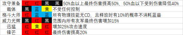 攻守兼备、霸体、格斗大师、威力光环、迅猛锋芒
