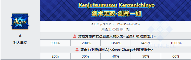 柳生的宝具为蓝卡单体输出,宝具后降低敌方单体20%~60%攻击力3回合(效果随OC等级提升)。