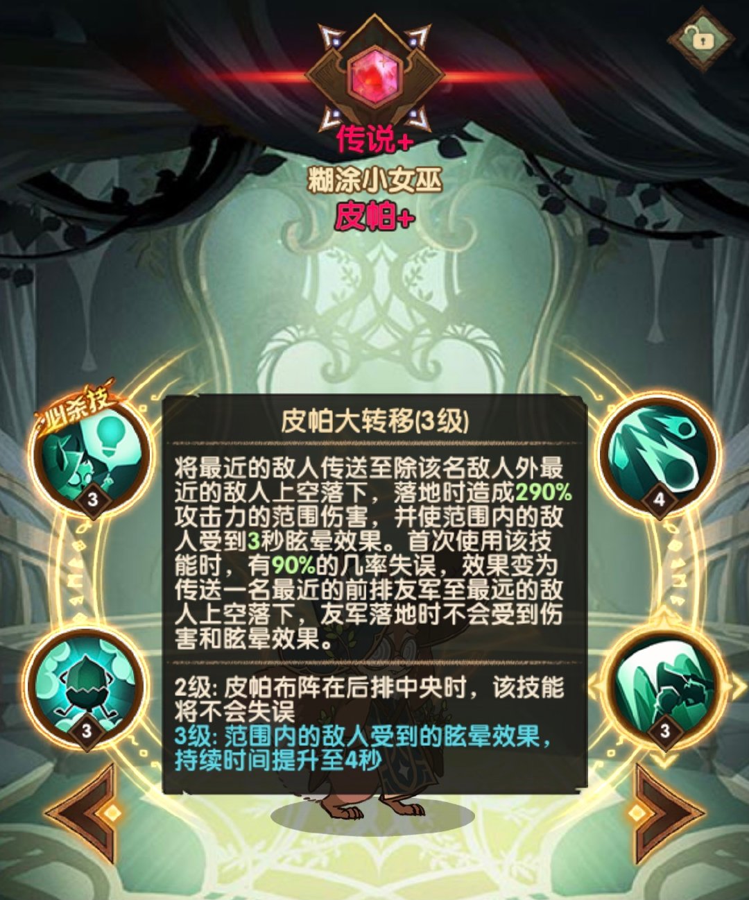 之所以是三眼的进阶英雄,在于三眼的3技能黑域之旅传送的是生命值最高的敌人到最虚弱的敌人。这个传送是不稳定的,英雄定位引导压缩,而皮帕则是位置引导压缩,效果更加。其次,皮帕造成的伤害比三眼更高,落地造成的控制比三眼更稳定。虽然三眼和皮帕是两个不同类型的英雄,但就单技能对压缩阵型的帮助,皮帕更优秀。