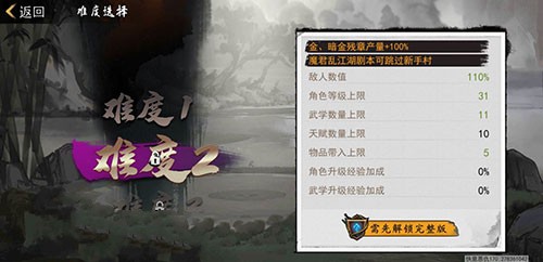 但是这个前提就是你解锁了这个完整版才行,也就是需要花钱购买,否则的话连续签到一个月也可以,小编认为这个游戏几十块钱还是非常值得考虑的,而且本身游戏的自由度比较高,非常适合多周目来进行体验,如果你不购买完整版的话,没办法解锁高难度,也就是等级无法突破上限。