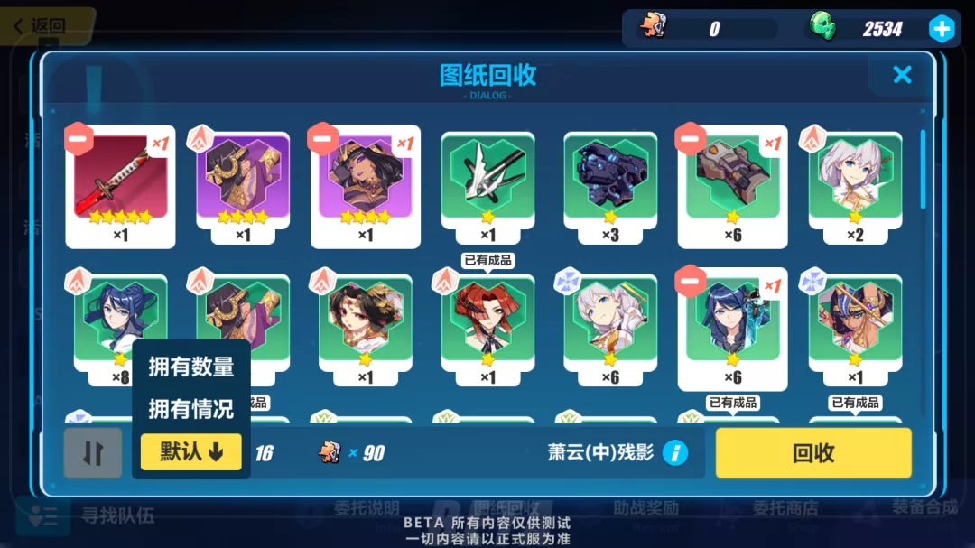 舰长可以根据自身圣痕/武器的拥有情况、数量等进行排序,方便对图纸进行整理,同时图纸上方也会提醒舰长是否已经拥有该圣痕/武器,帮助舰长更好的选择要回收的内容。