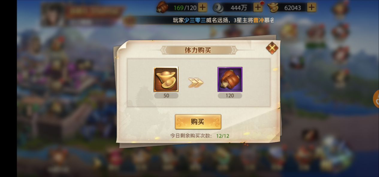 这其中,因九州、战役等的战斗皆需要消耗体力,而在前期,九州与战役玩法等是我们升级与获取资源强化等的主要方式,每日体力有限的情况下,我们花少量的元宝为我们增加一两次体力值,换取更多的九州、战役等次数,日积月累,这将给我们战力的提升提供相当大的助力。