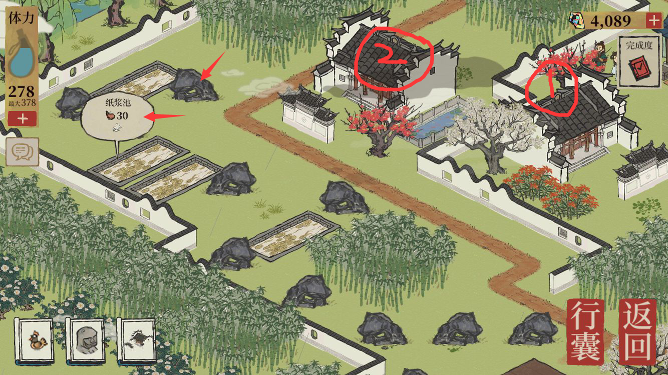 原料纸*12,砚石*18,铜钱*200,体力-30,两个书局,所以需要两份。