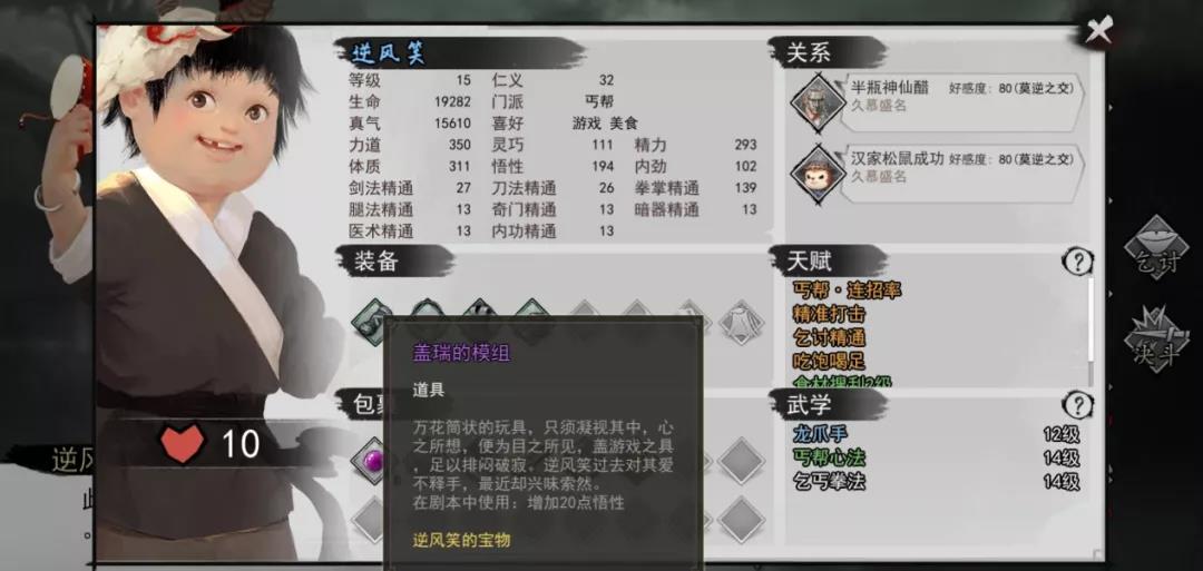 此人悬挂羊头,手持拨浪鼓,身怀宝物【盖瑞的模组】,拥有特别的天赋和武学,体态更是可爱圆润,一副天真烂漫的笑容,令无数大侠心生好感。