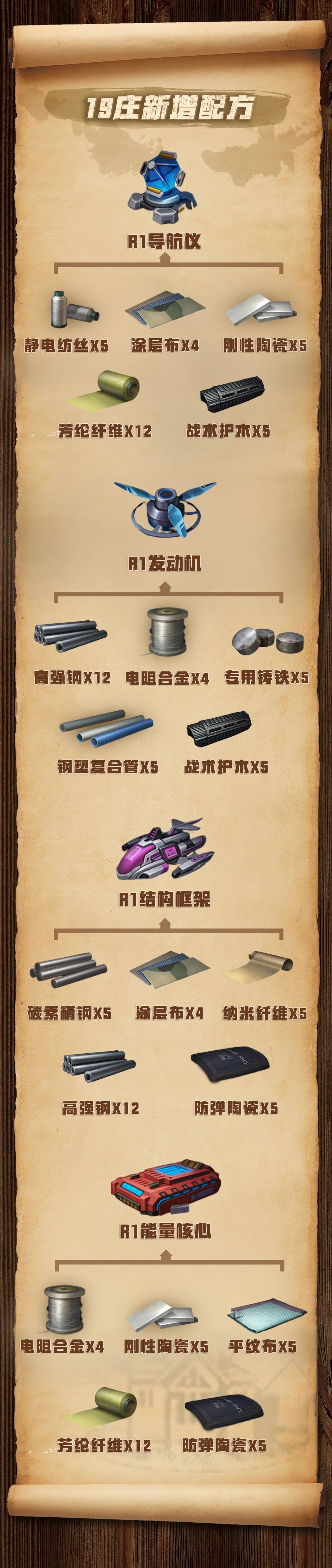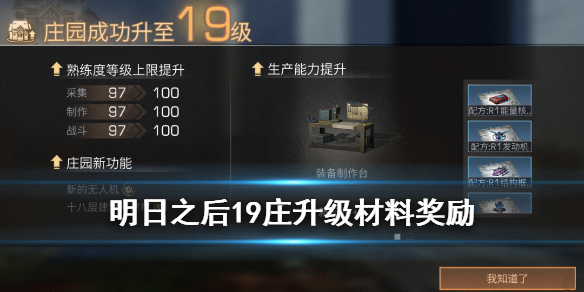 19级庄园将提升幸存者的基础结构分和家具分,新增十八层建筑修建权,同时解锁R1级无人机模块配方,并赠送版的R1级无人机模块。