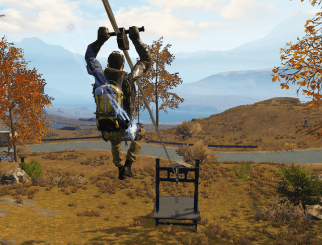 幸存者们在丘陵等地形中可以选择建造更为便捷的电动滑索装置,幸存者建造好起点的电动滑索装置后,再放置一个终点电动滑索装置(两个装置间的距离不可过远),将准星对准远处的终点使用链接功能,即可实现滑索装置的串联。