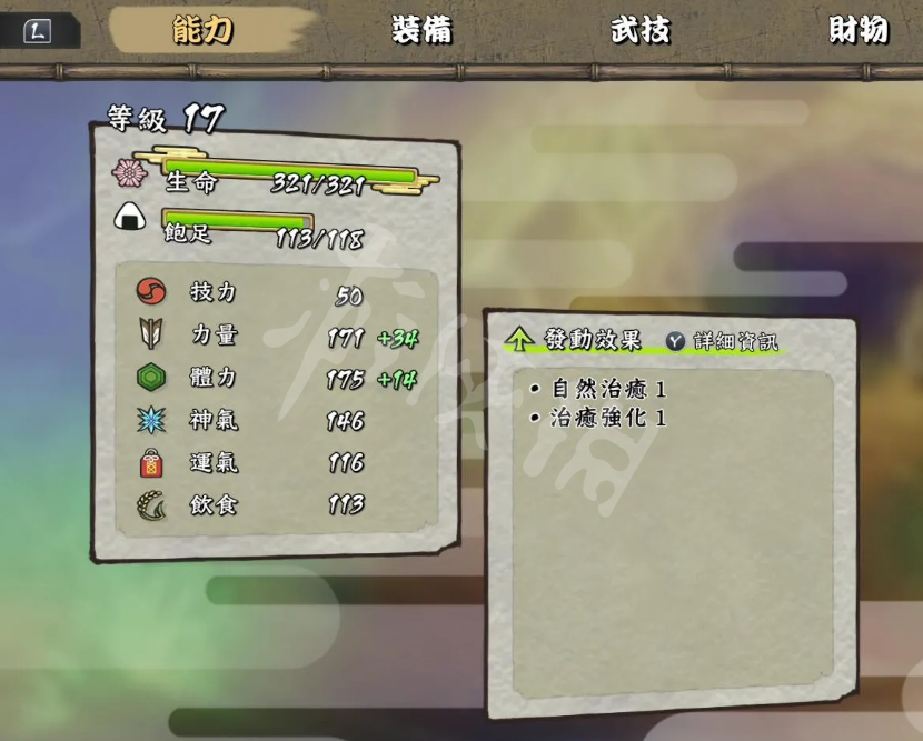 但需要注意的是部分比较长的迷宫例如大寿树之森等,如果没有探索到鸟居(即中途传送点)就返回家里,下次探索就要从头进行,因此饱腹度中限定发动的自然治愈能力非常重要。